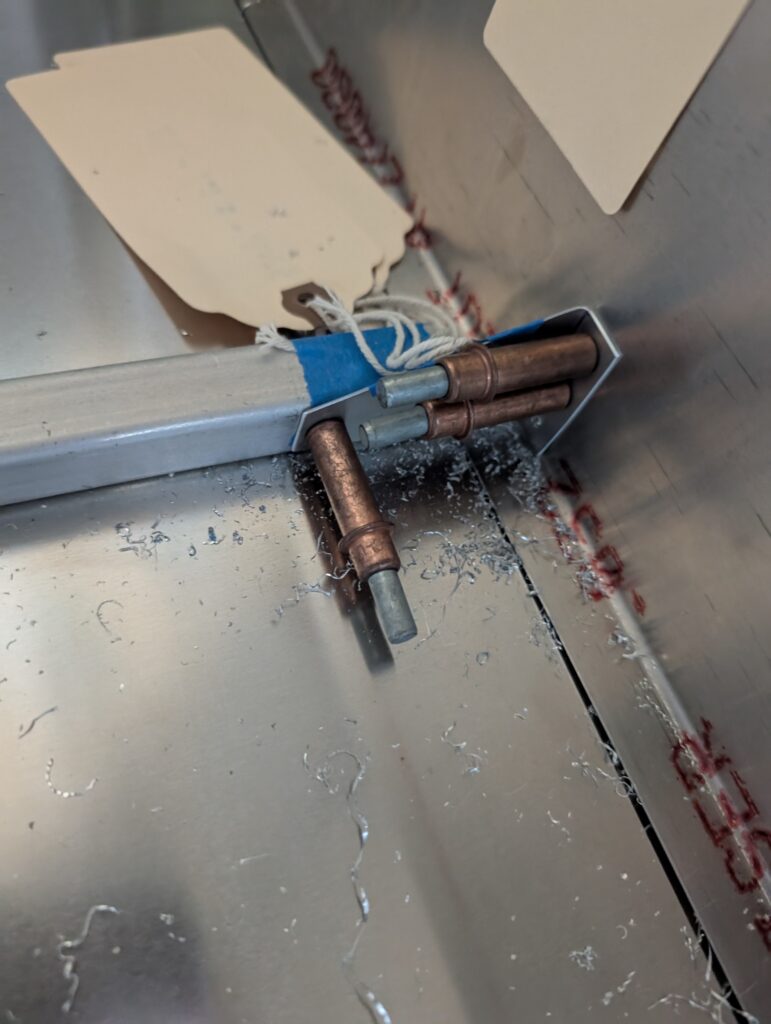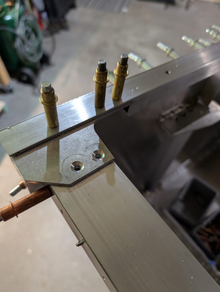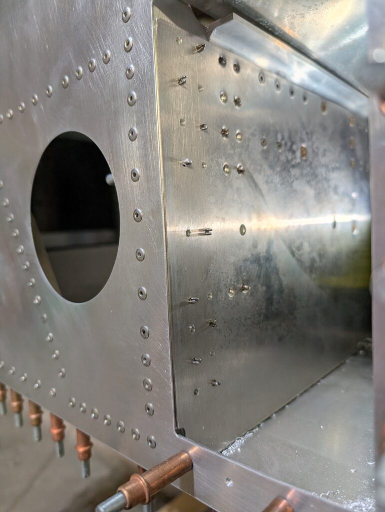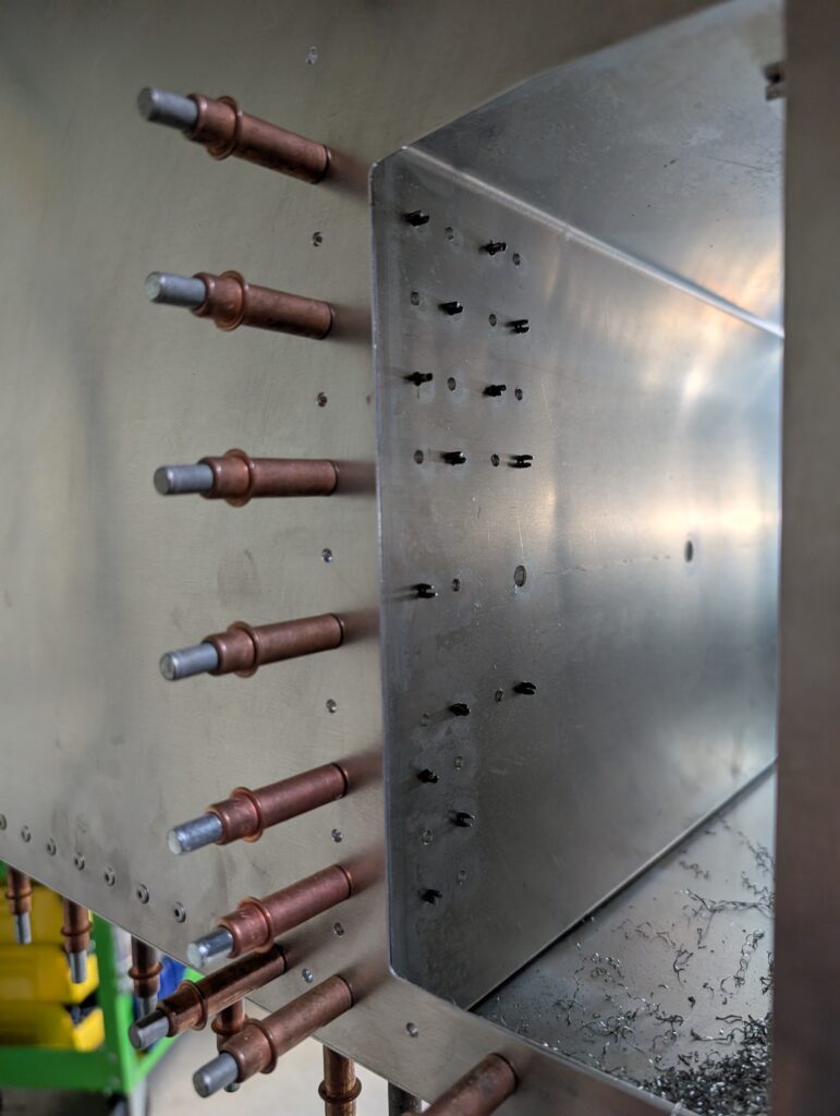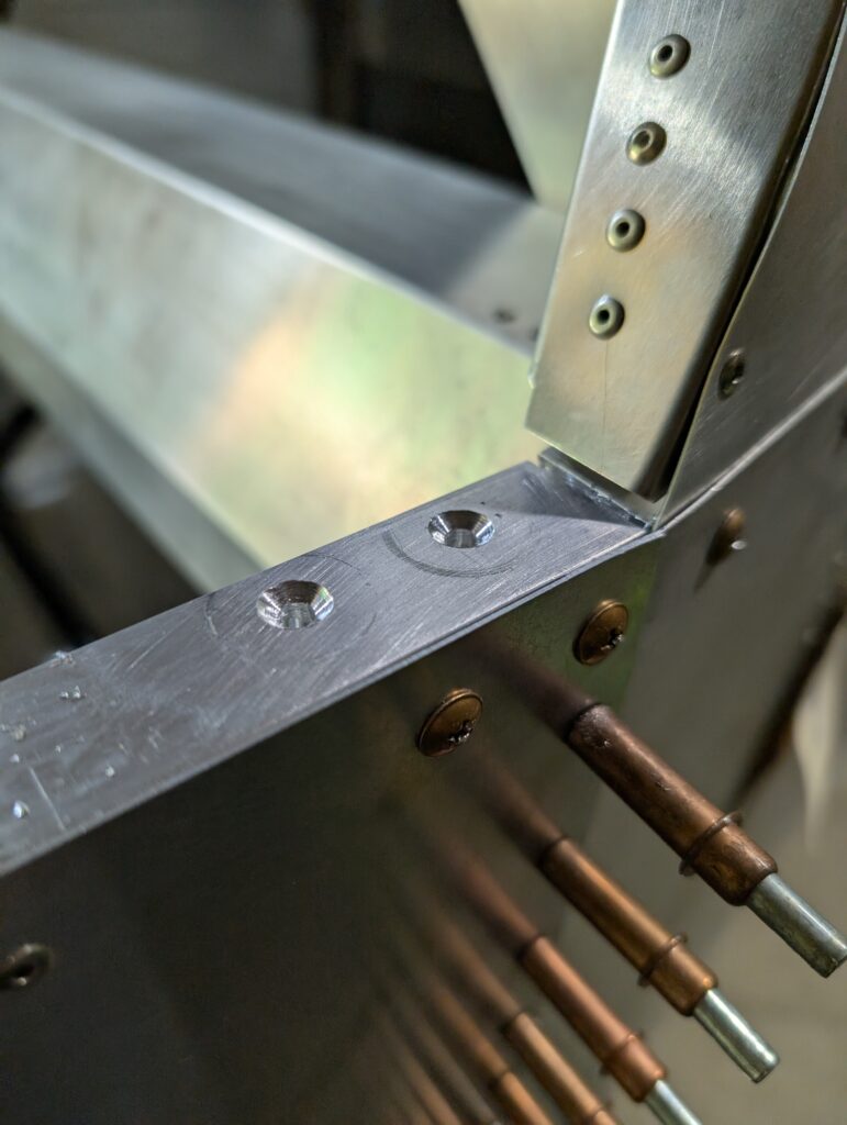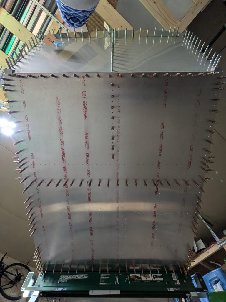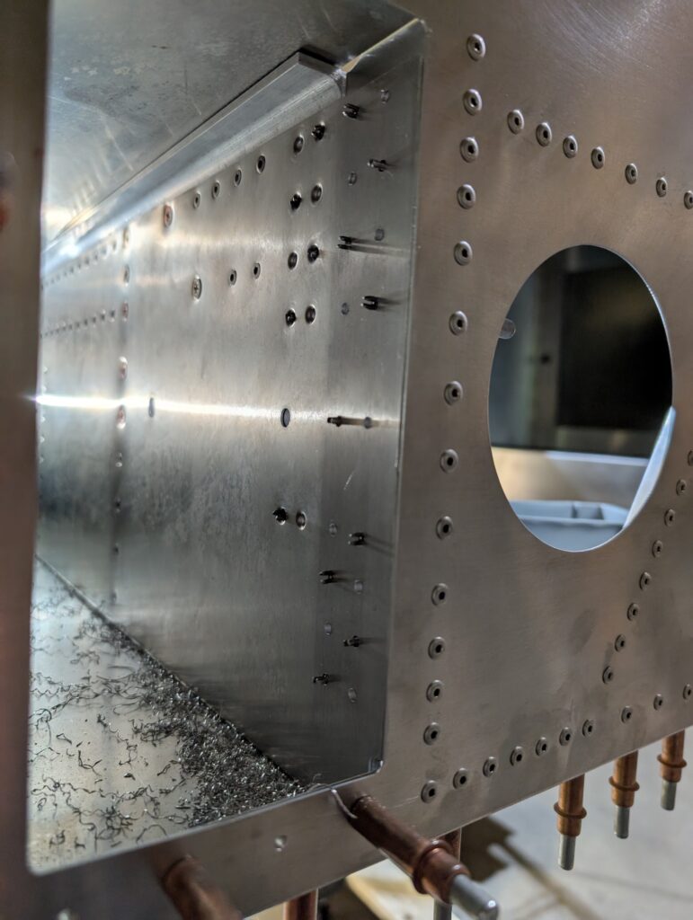 Up drilled LH fuselage side skins and splice plates. Countersunk top longeron for flush hardware. Up drilled forward fuselage floor including bolt holes. Aligned P13-08 lower cowl hinge half then drilled and clecoed to lower firewall. Up drilled lower firewall. Up drilled upper cross tie including countersinking holes for flush screws. Up drilled fuselage and floor stiffeners including all gussets. Up drilled upper firewall. Checked alignment and squareness of fuselage. Using angle drill, up drilled forward and aft spar tunnel webs from inside spar tunnel. Disassembled forward fuselage to deburr and prep parts.