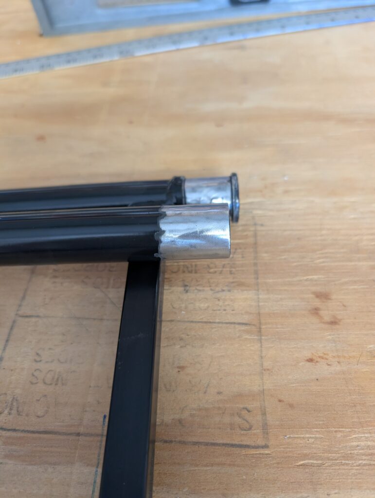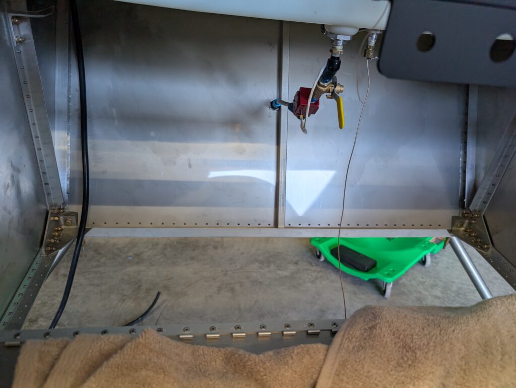 Removed forward fuselage floor for better access to rudder pedals then removed rudder pedals and mounting blocks. Used die grinder to remove powder coating from pivot points on rudder pedals. Created cable adjusters from aluminum bar stock.