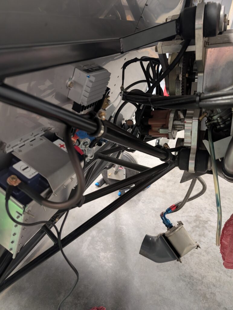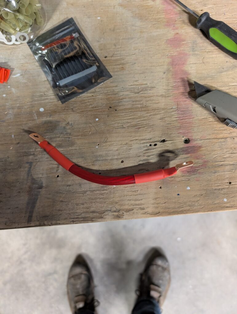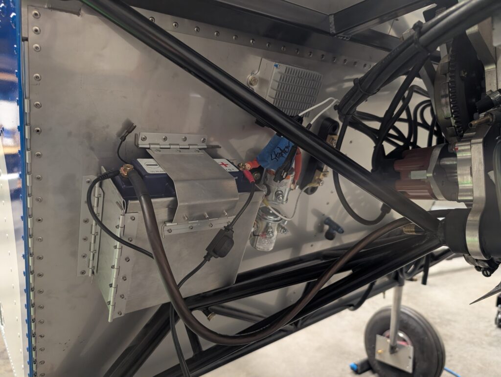 Continued working on firewall forward wiring by making battery cables for master relay, starter relay, and amp shunt. Created ground cable for engine and attached to engine mount plate bolt then secured cable to engine mount with adel clamps.