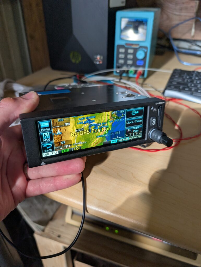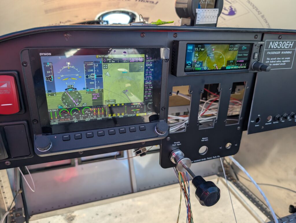 Diagnosed GPS175 screen issue by dissassembling unit and cleaning and reseating screen ribbon connectors; ops check good. Installed GPS harness onto back of tray and wired up ground and power connections. Installed unit and tested; ops check good. Fabricated antenna cable from RG400 coax and drilled center holes for both Dynon and Garmin GPS antennas. Spaced center of antennas 9 inches apart per Garmin recommendation. Temporarily installed Garmin antenna and tested; checked good. Extended Dynon display harness for SV-GPS-250 with wire splices and ran wires along RH side of fuselage to baggage compartment. Installed DT connectors on antenna and display harness. Still need to mount antennas so will leave runs long for now. Located OAT probe under RH side of horizontal stabilizer and ran wires along with ELT remote harness along RH side of aft fuselage.