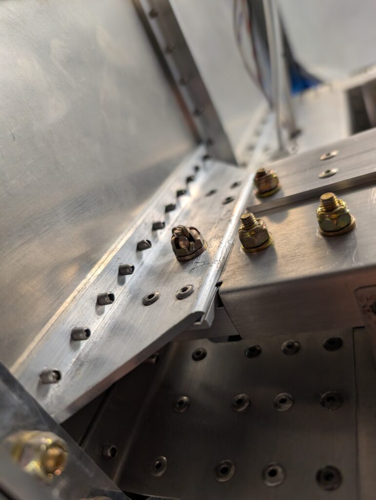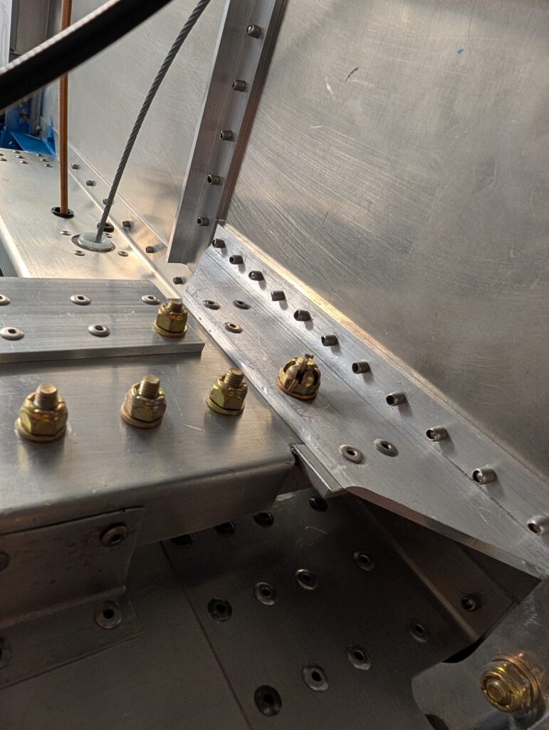 With help, mounted left and right wing assemblies onto fuselage. Attempted to add weatherstripping on inside edges of wings but there wasn’t enough clearance; will likely seal gaps with tape later on. Before sliding wings fully together, connected wing root connectors and pitot/AOA connections. Opted to use drilled hardware and cotter pins for wing bolt connections. Torqued wing hardware and installed cotter pins.