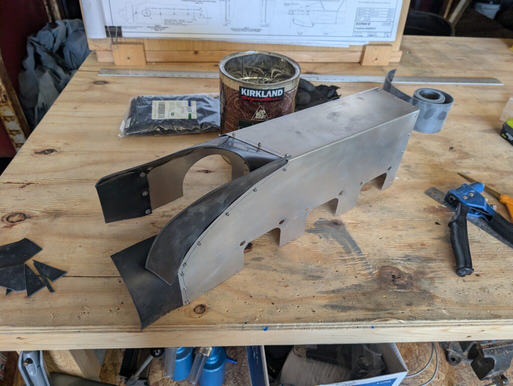 Installed rubber baffle sections onto engine cylinder baffles with AAP rivets. Test fit baffles back onto engine and checked clearances. Installed spark plug wire grommets onto spark plug harnesses.