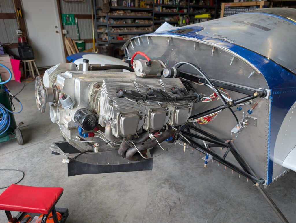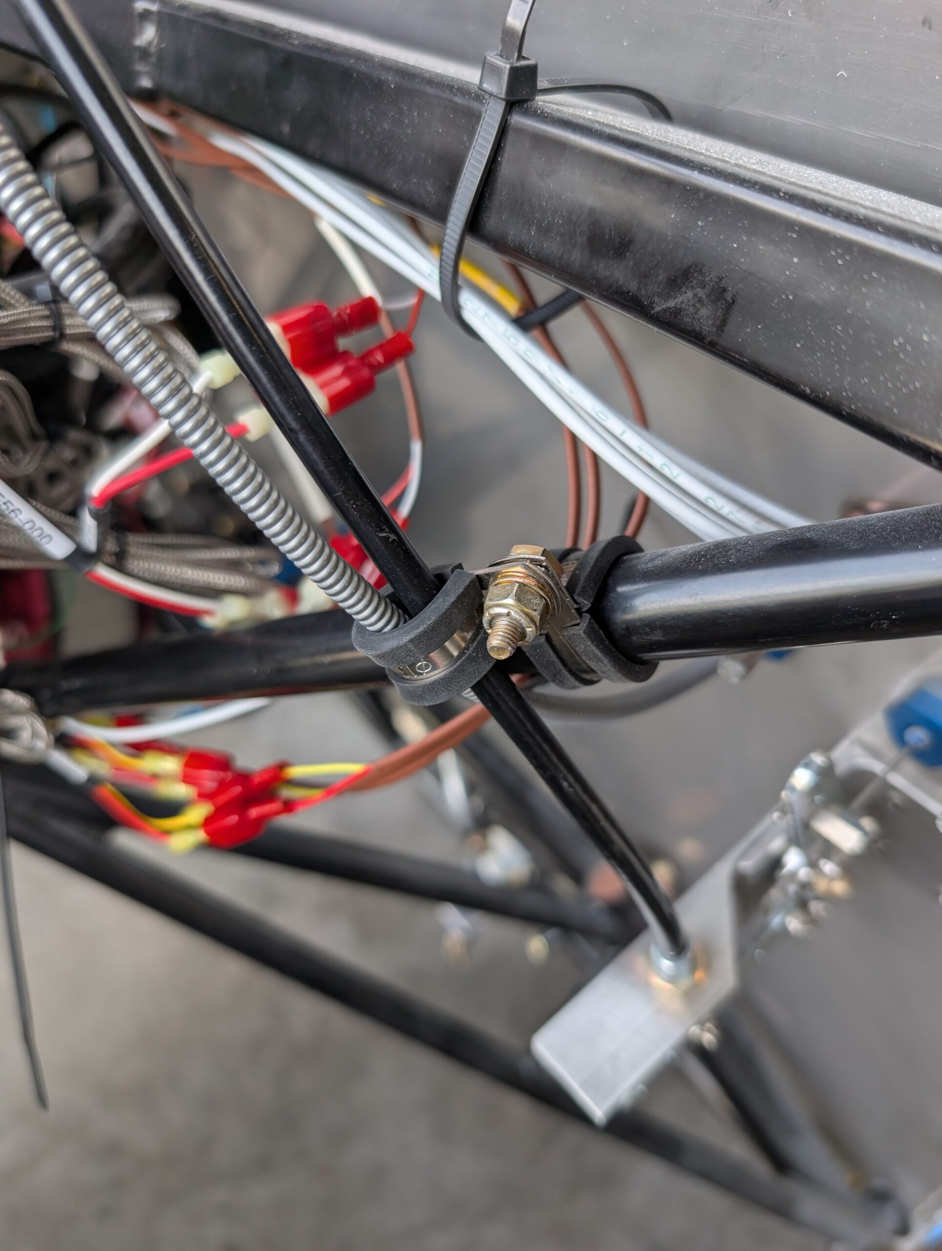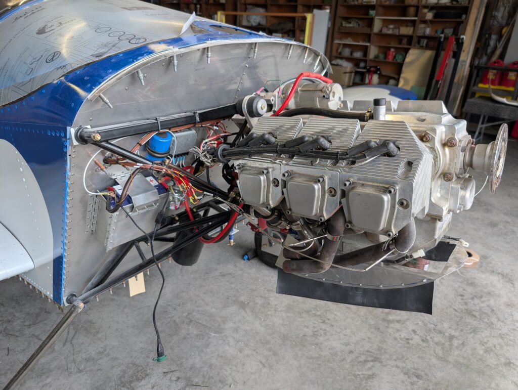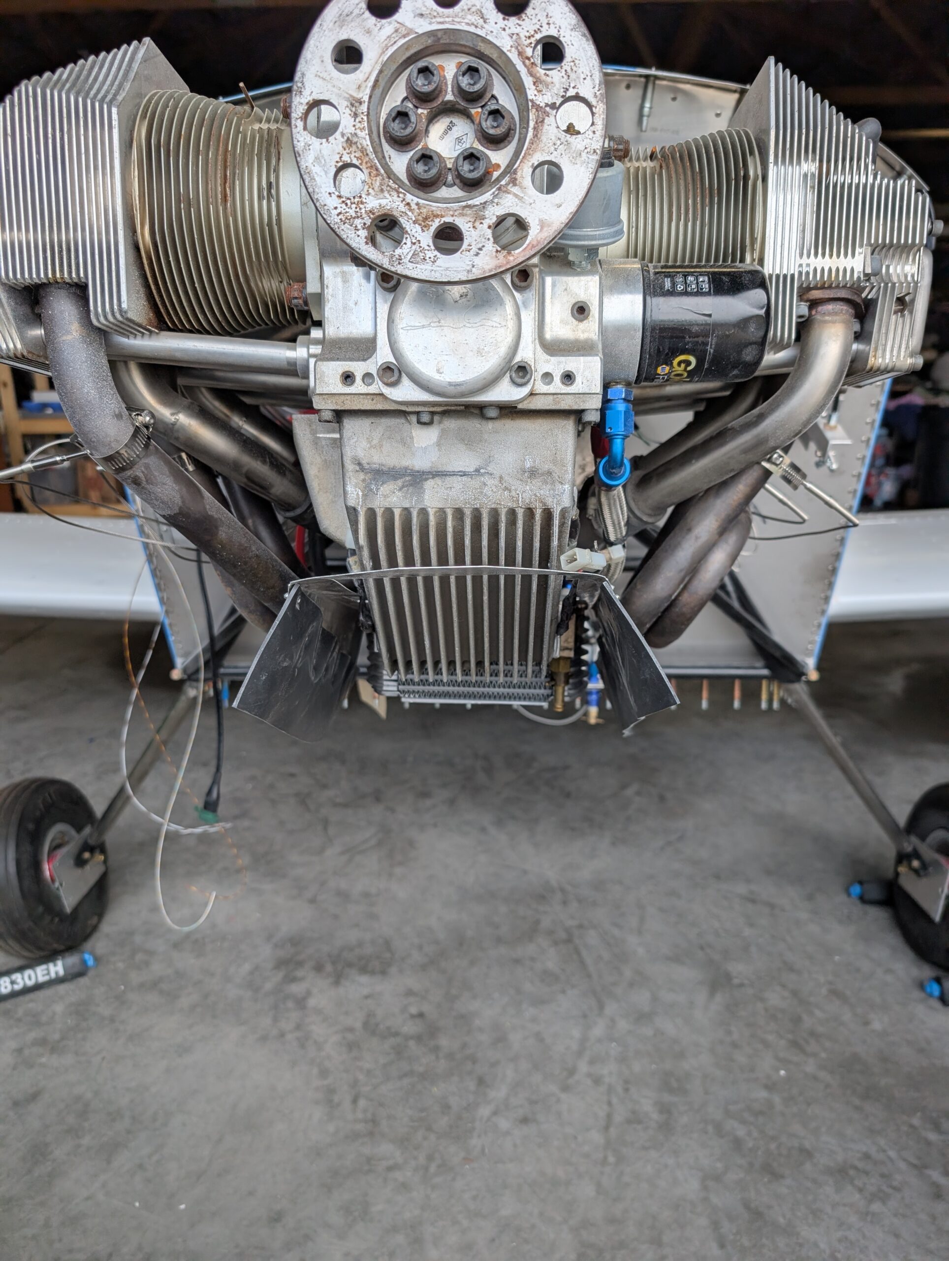Installed rubber baffle material onto oil cooler duct. Installed EGT and CHT sensors onto engine and completed FWF wiring harness routing (other than oil pan heater). Verified temp probe operation with SkyView system then secured wires and routing in engine compartment. Secured throttle and mixture cables to engine mount using Adel clamps and started mapping sensors and gauge layout on PFD.